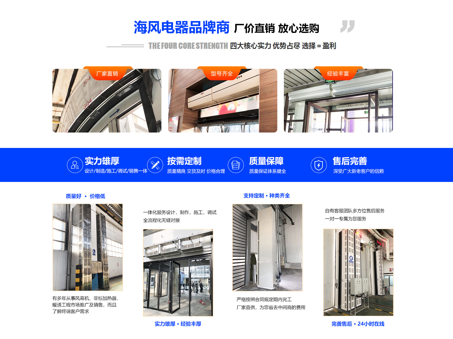 多年從事空調(diào)、風幕機、非標加熱器產(chǎn)品銷售,具有良好商業(yè)信譽和服務(wù)能力的經(jīng)銷商網(wǎng)絡(luò)做為企業(yè)發(fā)展的源泉?!翱蛻舻男枨缶褪呛oL人的追求”做為海風人的服務(wù)理念 ...